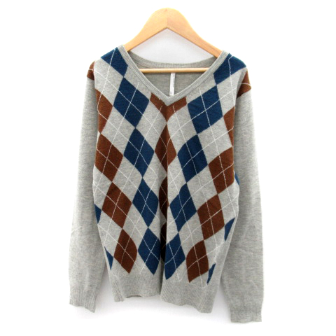 【中古】アーバンリサーチ ドアーズ ニット カットソー 長袖 アーガイルチェック柄 ウール 38 グレー メンズ