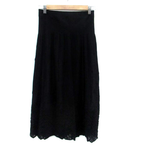 【中古】コムサマチュア Comme ca Mature フレアスカート ロング丈 総レース 花柄 F 黒 ブラック /HO37 レディース