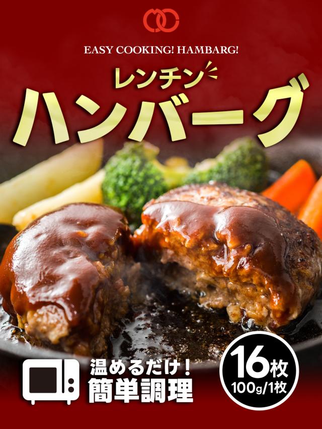 焼かないレンチンハンバーグ プレーン 16枚 温めるだけ ハンバーグ パテ 冷凍 個包装 小分け お肉 肉 冷凍食品 お弁当 家庭用 食品 お取り寄せグルメ 仕送り 大容量 冷食 洋食 湯せん