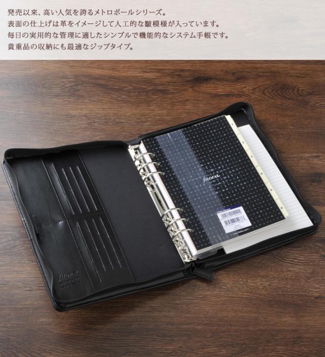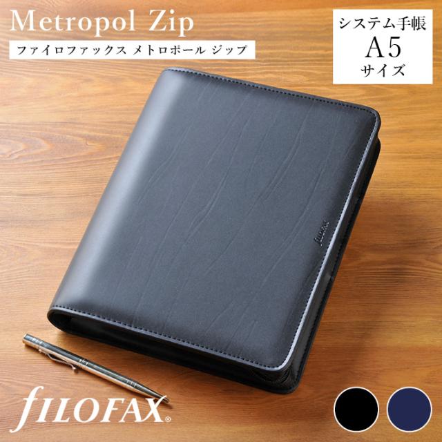 ファイロファックス システム手帳 メトロポール ジップ A5サイズ ラウンドファスナー 6穴 リング径30mm 合皮 年号無し年間スケジュール付き メンズ レディース デスクサイズ Metropol Zip Filofax