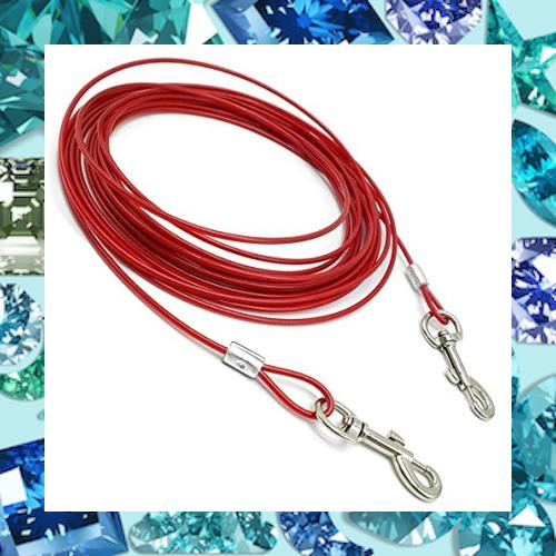 【材質】抜群の強度スチールワイヤーとビニールコーテッドで、犬鎖の1/4の軽さ、さびない、よじれないを実現した犬用の繋留器具です。スチールワイヤー表面の保護ケースはエチレンで制作します、スチールワイヤーが錆び付かないように保護します、安心してお使い頂けます。