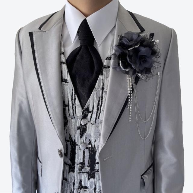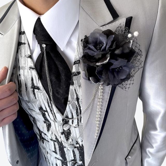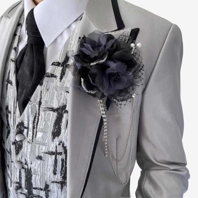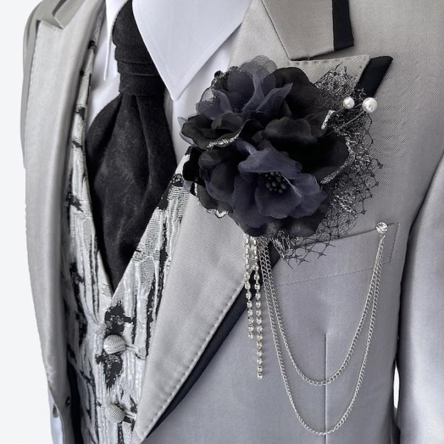 メンズコサージュは、エレガントスタイルとの相性抜群。結婚式スーツ、パーティースーツ、ホストスーツ、イベント衣装など、幅広くお使いいただけます。