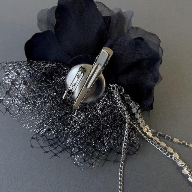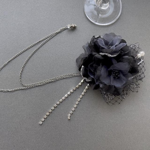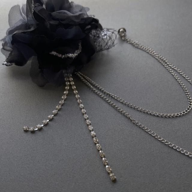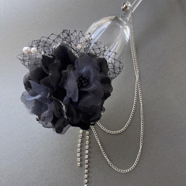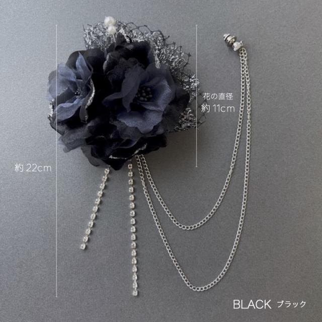 コサージュ ブラック 黒 ストーン チェーン コサージュ ブローチ ラペルピン 結婚式 披露宴 フォーマル スーツ タキシード お洒落 男 メンズ アクセサリー 男性用 花 高級感 ブライダル ホスト 発表会 カラオケ大会 パーティー 新郎 父 司会 進行役 衣装 衣裳 プレゼント ギフト 20代 30代 40代 50代 60代