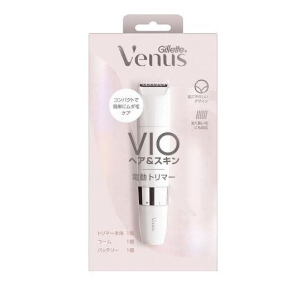 ●P&G ジレット ヴィーナス VIOヘアアンドスキン 電動トリマー(Gillette Venus VIO)●肌にやさしいトータルVIOケア(*)。簡単3Stepケアでヒリヒリ感が減って、なめらかなVIOへ![*国内向け製品内。本製品発売時点において。電動トリマー及び保湿セラムのラインナップ追加により]●本電動トリマーはVIOゾーンのムダ毛をケアするのに向けて開発されました。引っかかりを抑え、肌が敏感なVIOゾーンでも、優しくお手入れが可能です。●スキンプロテクトカバー搭載でトリマー刃の端が直接肌に触れない設計。●コンパクトで簡単にムダ毛ケア小さくて小回りが利く。持ち運びが便利。●トリマーヘッドは簡単に水洗いが可能。お風呂場の中でも外でも使用できます。【セット内容】トリマー本体、コーム、バッテリー(各1個)