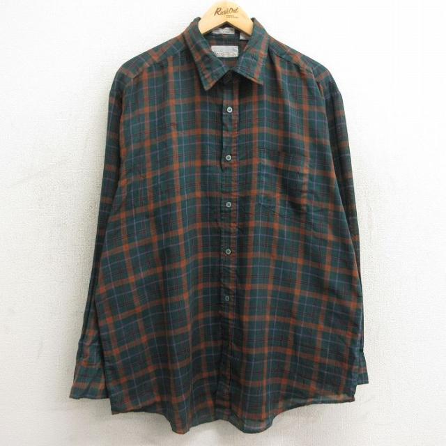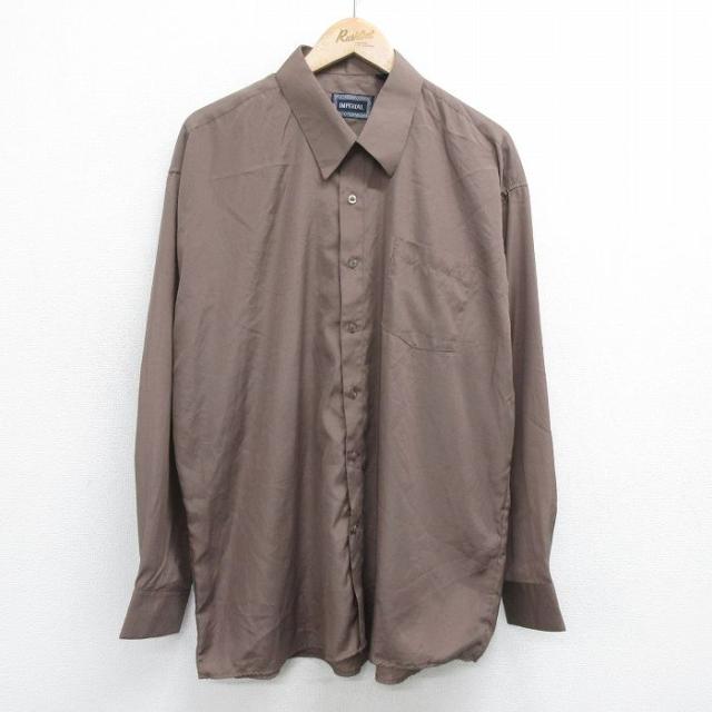 古着 長袖 シャツ メンズ 90年代 90s ロング丈 茶 ブラウン XLサイズ 中古 トップス 中古 古着