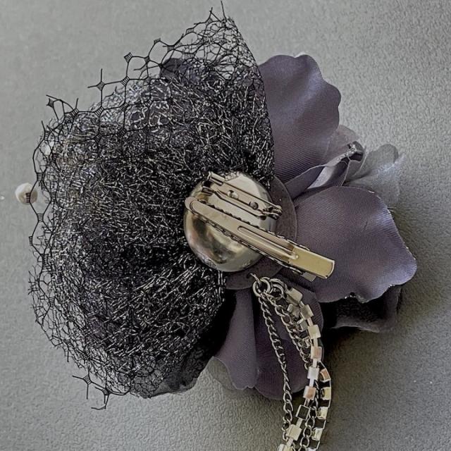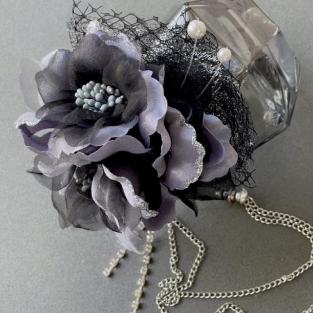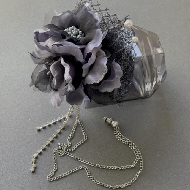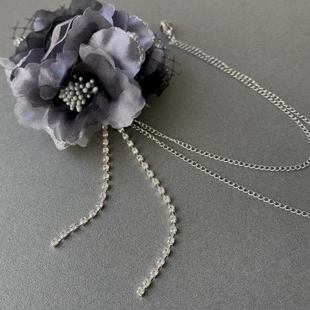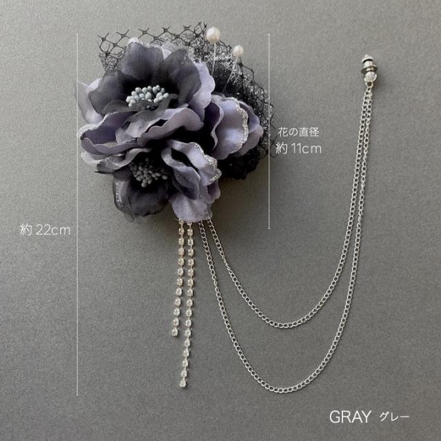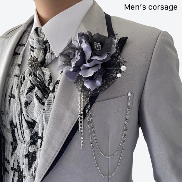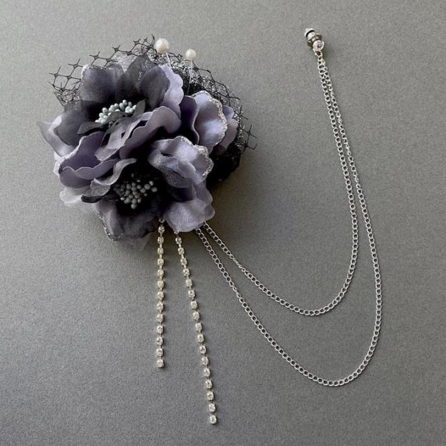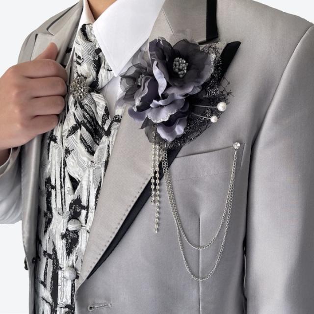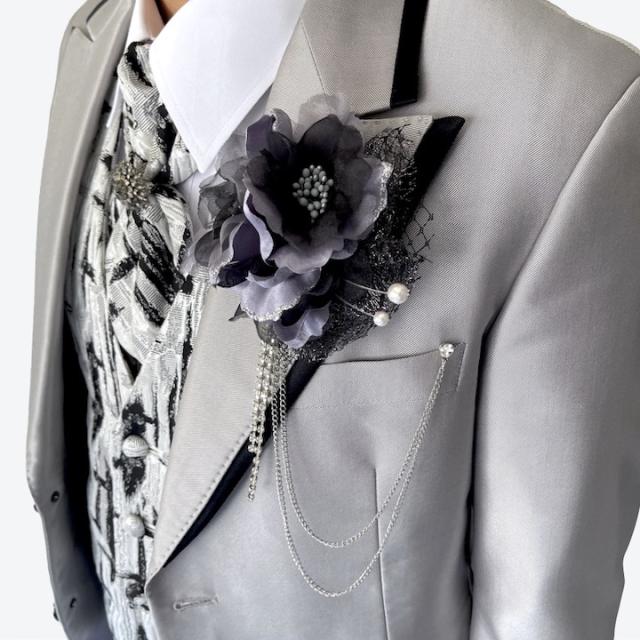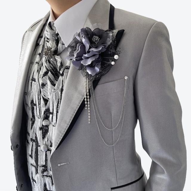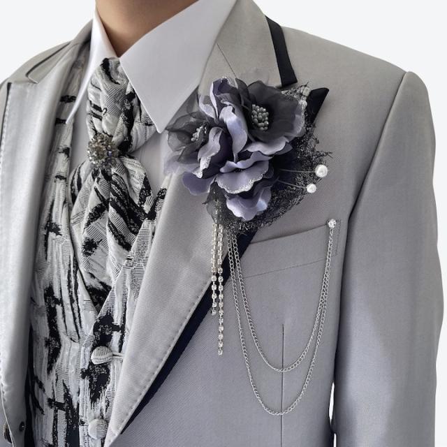 コサージュ 男性用 メンズ 新郎 グレー メンズ ストーン チェーン コサージュ ブローチ ラペルピン 結婚式 披露宴 フォーマル スーツ タキシード かっこいい お洒落 男 メンズ アクセサリー 男性用 花 高級感 ブライダル ホスト 発表会 パーティー 新郎 父 司会 衣装 衣裳