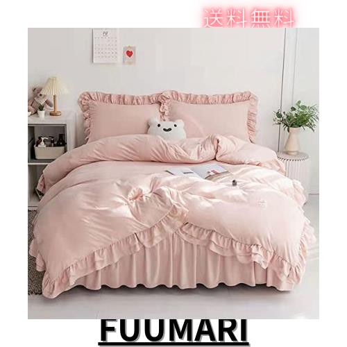 布団カバー フリル ベッドカバー 可愛い 寝具カバー 洗える 掛け布団カバー ボックスシーツ 枕カバー かわいい 布団かばー アイボリー 洋