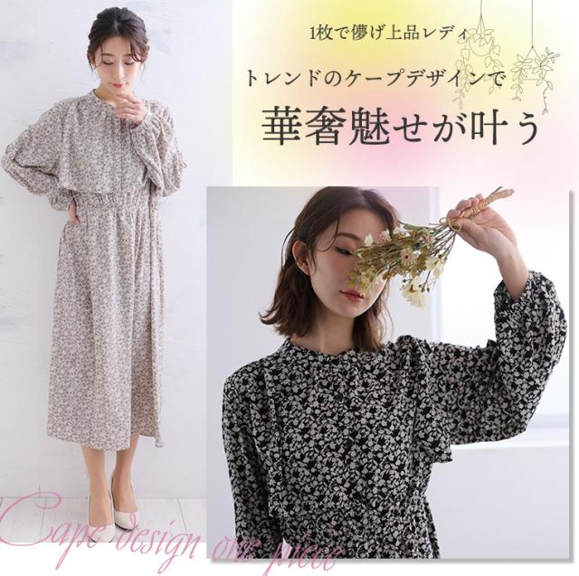 新作 大きいサイズ レディース ワンピース | ケープ 花柄ワンピース [861069] LL 3L 4L