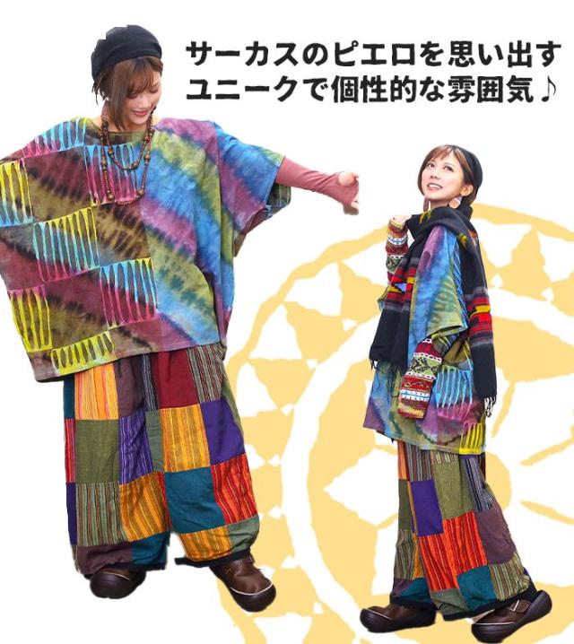 サルエル アラジン 【SPT】パッチワークサーカスパンツバルーンパンツ ワイドパンツ コクーンシルエット 大きめ
