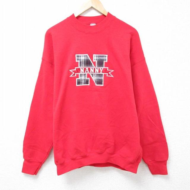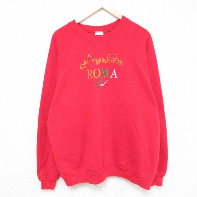 【商品名】 XL★古着 長袖 スウェット メンズ 90年代 90s ローマ 刺繍 ラグラン クルーネック アイルランド製 赤