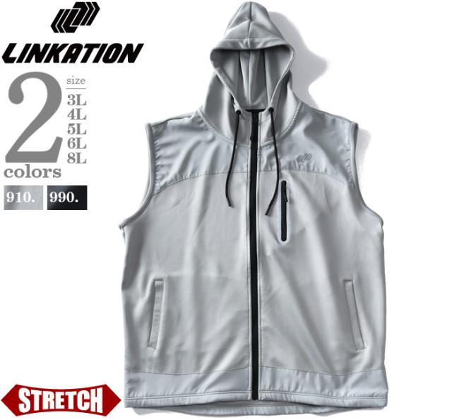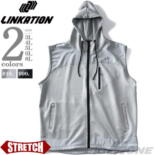 大きいサイズ メンズ LINKATION リンケーション ポンチ 切替 フード付き ストレッチ ベスト アスレジャー スポーツウェア lk-cj240110