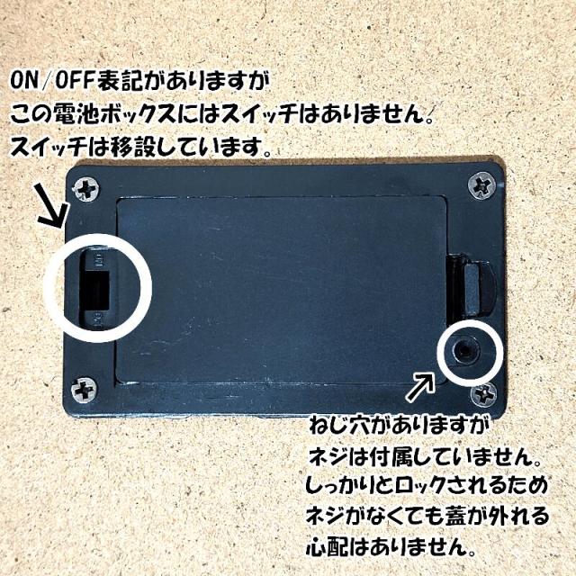 ON/OFF表記がありますが、電池ボックスにスイッチはありません。スイッチは移設しています。