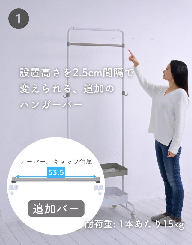 トローリーハンガー 追加ハンガーバー 【パーツのみ ※本体別売り】 ハンガーラック バスケットトローリー コートハンガー 寝室 玄関 リビング 収納 バッグ ランドセル 山善のトローリー 山善 YAMAZEN 【送料無料】