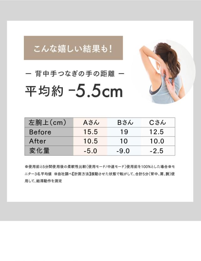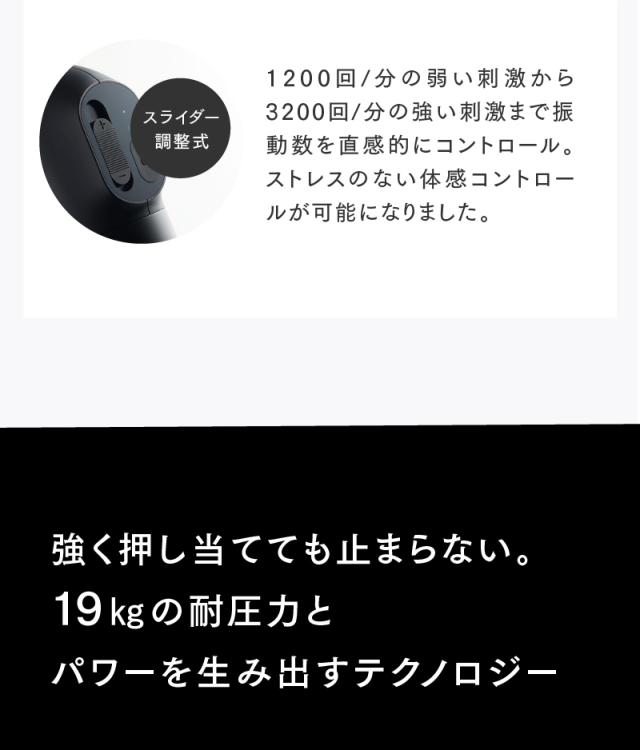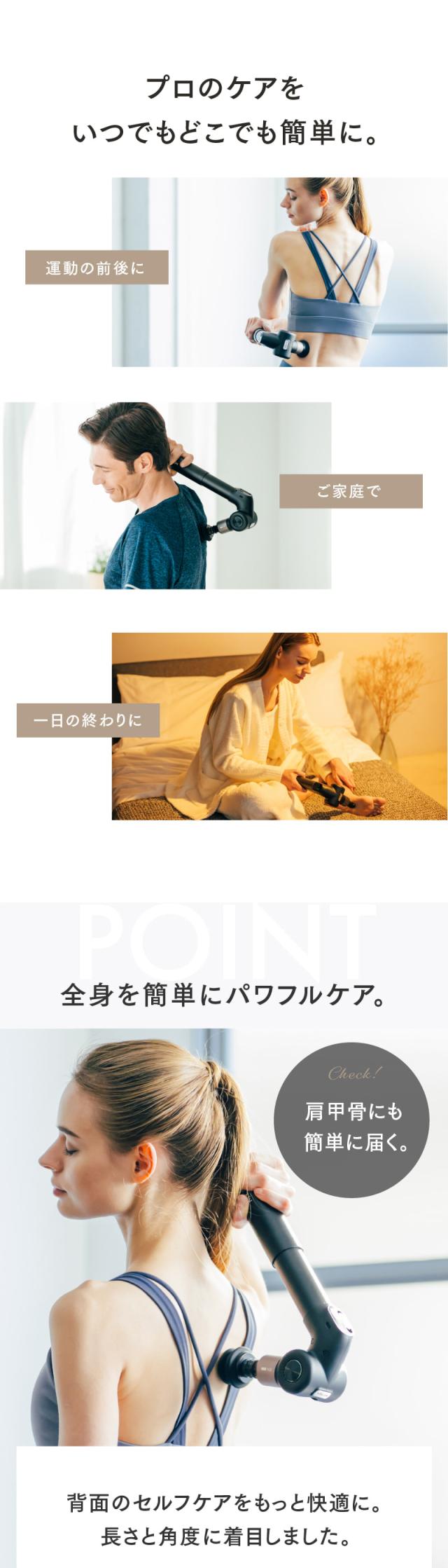プロ仕様のスペックで、アスリートや運動をする方のコンディショニングやボディケアに特におすすめです。伸縮性のあるハンドル部分と角度調整が可能なヘッド部分で背面にも届きやすく全身くまなく簡単に身体の奥深くまでアプローチ。ワンランク上のボディケアが行えます。