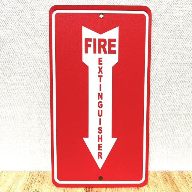 ブリキ看板 アルミ メッセージプレート 消火器 赤 壁飾り アメリカン ガレージ アンティーク 雑貨 インテリア レッド