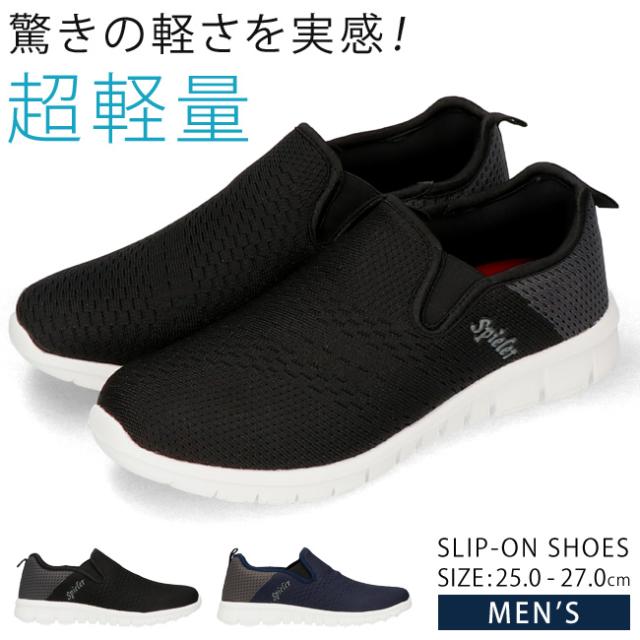 スリッポン メンズ 軽量 歩きやすい 疲れない 履きやすい 蒸れにくい メッシュ おしゃれ 黒 JMS-1756 運動靴 スニーカー 靴