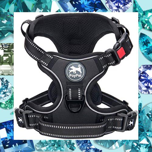 PoyPet 犬ハーネス 首輪 胴輪 大型犬 ソフト 安全 簡単着脱 咳き込み軽減 調節可能 反射材 引っ張り防止 車載功能 耐久性 老犬 歩行補助
