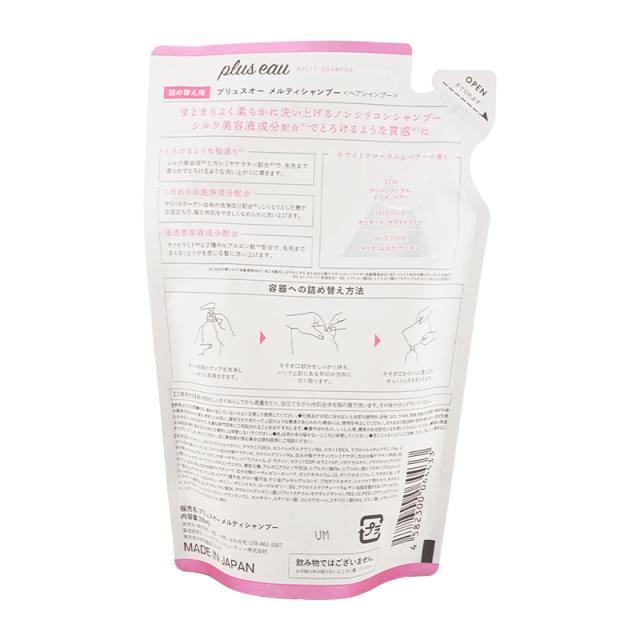 plus eau プリュスオー メルティシャンプー 詰替え 350ml ホワイトフローラル&ペアーの香り ツヤ髪 ノンシリコン シルク美容液 [ギフトラッピング対応]