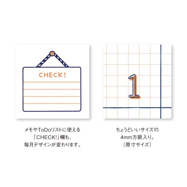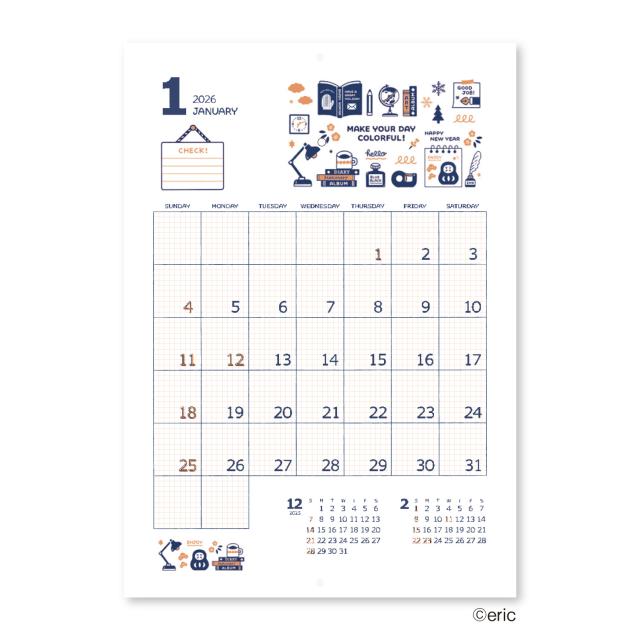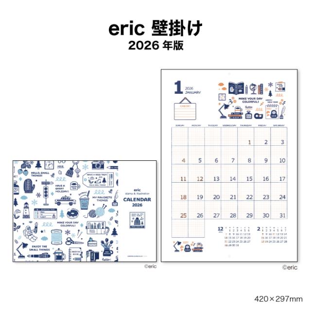カレンダー 2026年 壁掛け eric NK4000 2026年版 おしゃれ かわいい 小さい 消しゴムハンコ スタンプ クラフト デザイン アート インテリア 罫線 ToDoリスト 258273