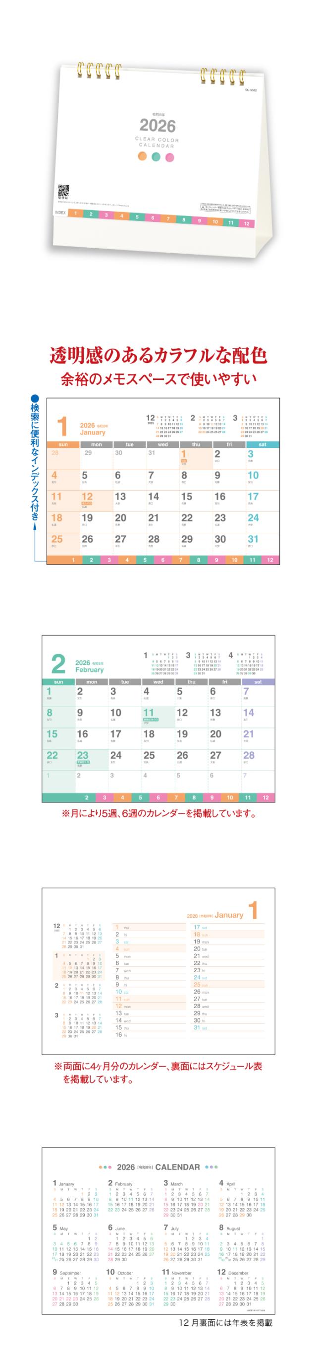 | 2026年 クリアカラーカレンダー SG9582 商品詳細 | |