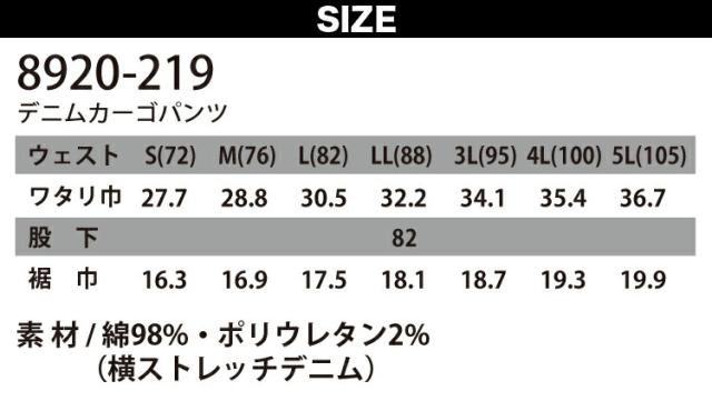 【寅壱】TORA デニムカーゴパンツ 作業服 作業着 8920-219