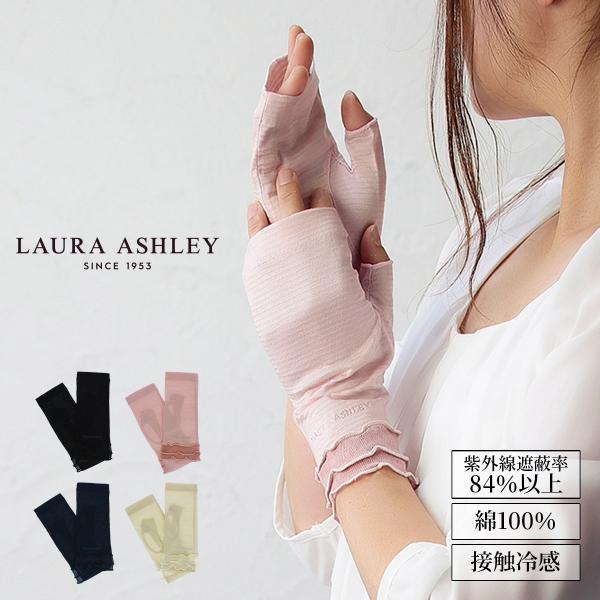 UV手袋 手袋 UVカット uv ドライブ ひんやり 接触冷感 綿100% コットン ショート アームカバー 人気 ブランド ローラアシュレイ スマホ 洗える おしゃれ 黒