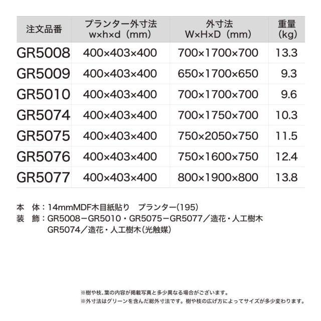 ※グリーンは造花の為、屋内設置でも直射日光や高温により、変色劣化する場合がございます。