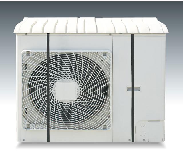 室外機に乗せてバンドで止めるだけの簡単取り付け。