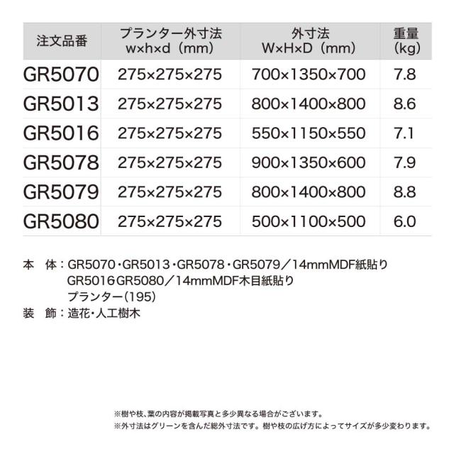 ※グリーンは造花の為、屋内設置でも直射日光や高温により、変色劣化する場合がございます。