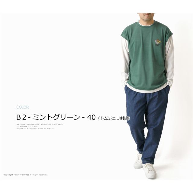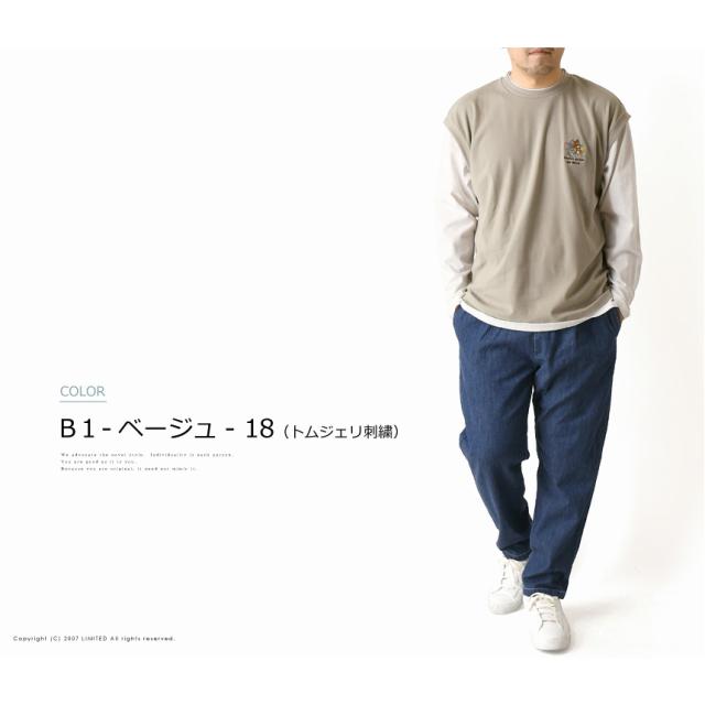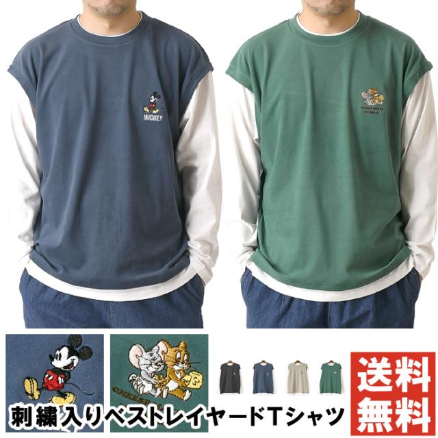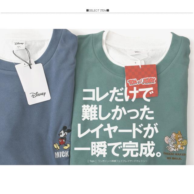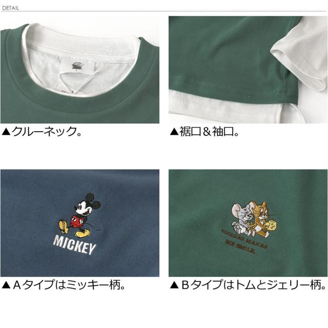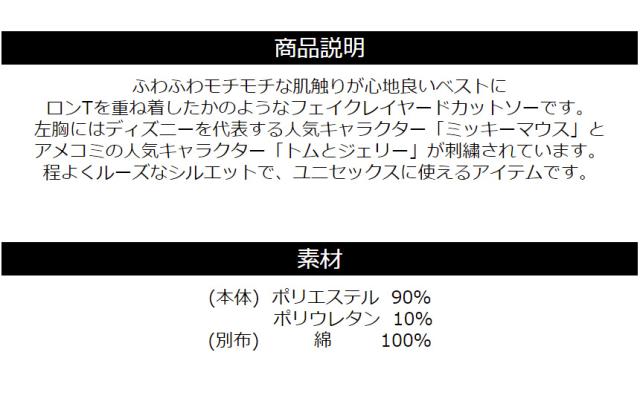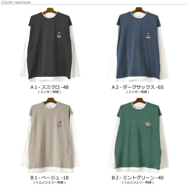 フェイクレイヤード カットソー 長袖 メンズ ロンT ディズニー ミッキーマウス tシャツ トムとジェリー ユニセックス 送料無料 通販A3 【F2-1248】