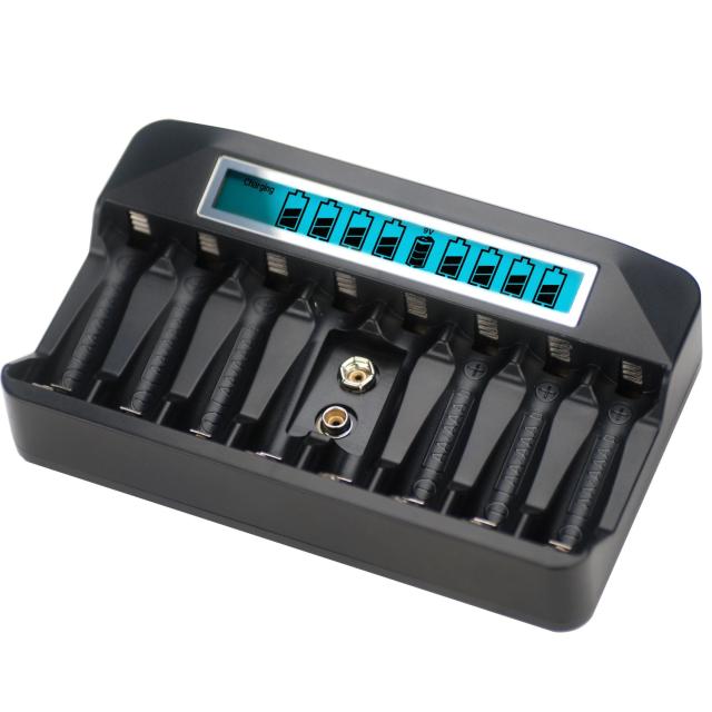 乾電池充電器 電池充電器 マルチチャージャー ニッカド、ニッケル水素 リチウムイオン電池 単3、単4、9V充電池対応 LCD付きマルチ充電器 日本語説明書付