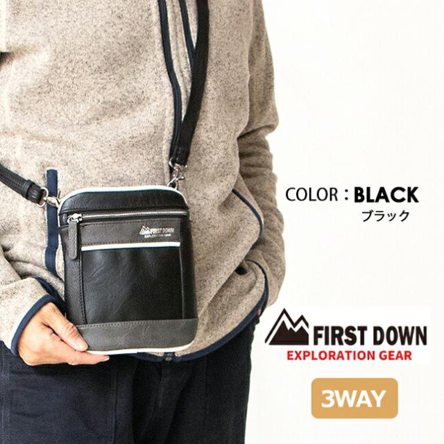 斜めがけバッグ メンズ 33040 FIRST DOWN-EX ファーストダウンEX 3WAYショルダーバッグ タテ型 軽量 斜めがけ 小さめ 軽い スマホポーチ ミニショルダー 小物入れ 小物ポーチ レディース カジュアル かっこいい おしゃれ 人気 男性用 メンズバック 旅行 ブラック プレゼント