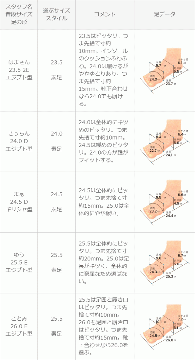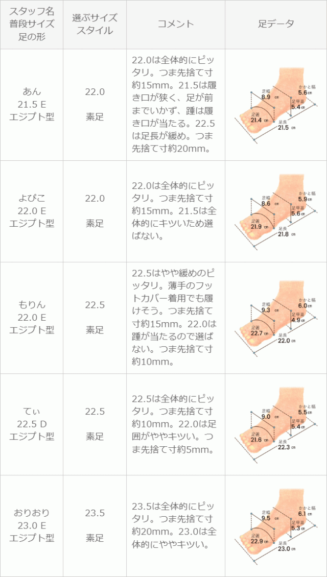 ※足の形には個人差があります。スタッフ試着感想は参考程度にお考え下さい。