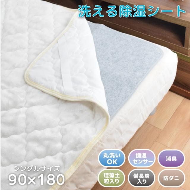 除湿シート 洗える シングル 約90×180cm 消臭 防ダニ カビ対策 珪藻土粒入り 備長炭入り シリカゲル 調湿センサー 除湿マット 湿気取り 湿気対策 吸水マット 結露 梅雨対策 押入れ クローゼット タンス 布団 新生活
