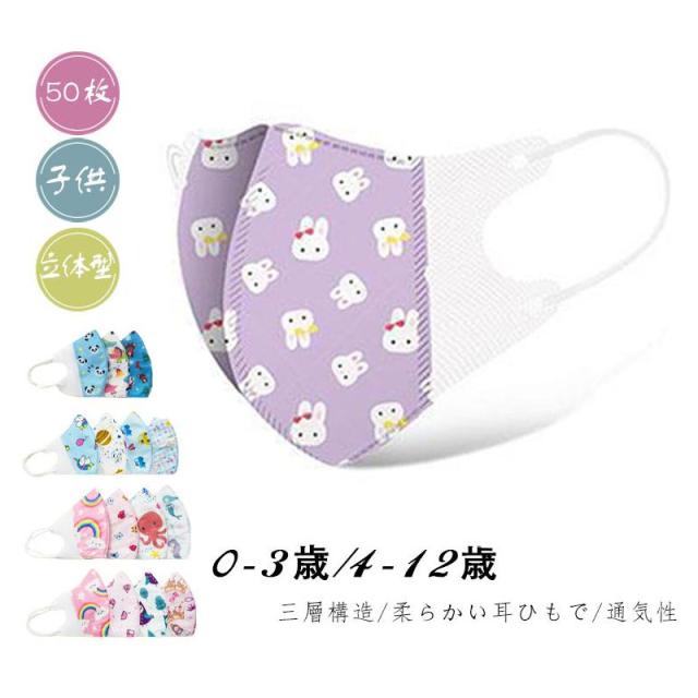 一部即日発送 幼児用マスク 使い捨て 50枚 カラーマスク ベビー 子供 立体型 4層構造 不織布 柄 飛沫防止 風邪予防 キッズ