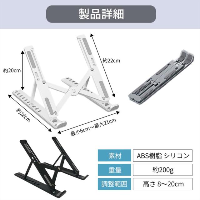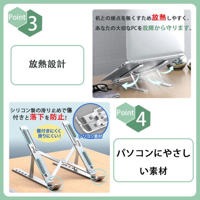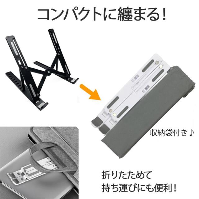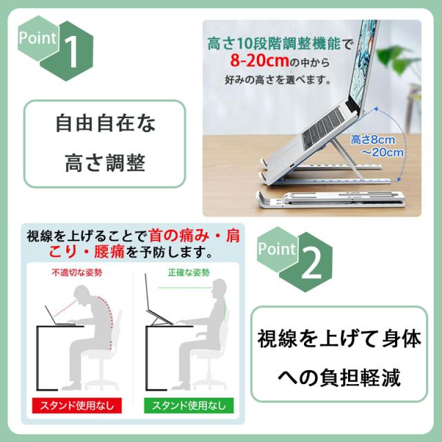ノートパソコンスタンド PCスタンド 机上 折りたたみ式 優れた放熱性 角度調整可能 高さ タブレットスタンド アルミ合金製 滑り止め 軽量 姿勢改善 腰痛解消 父の日