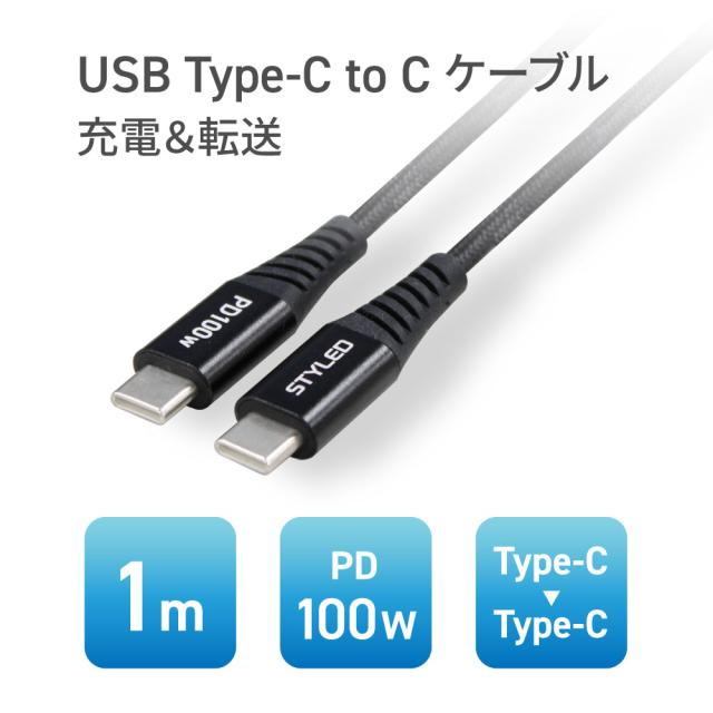 【メール便送料無料】USB Type-C ケーブル PD100W CtoC タイプC USB2.0 高耐久 メッシュケーブル Android 充電 急速充電 ノートPC MacBook 1m STYLED JCPD100BK-1M