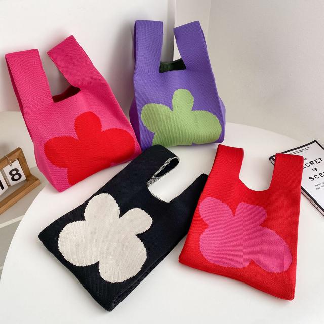 サマーニット ミニトートバッグ トートバッグ エコバッグ ニットバッグ 編みバッグ 花柄 送料無料