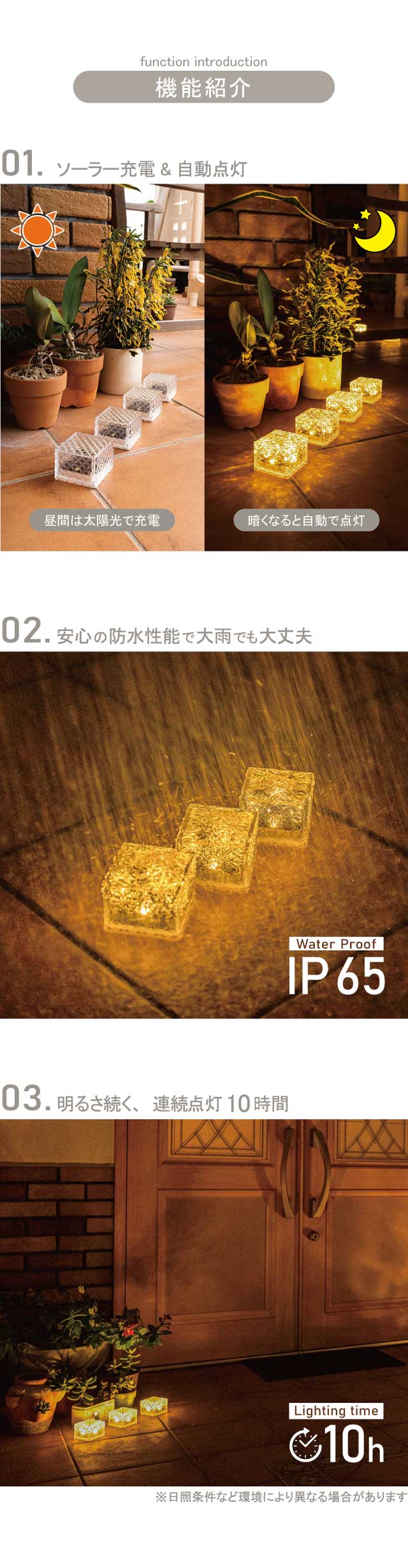 - ダイヤカットがとてもきれいで、以前買った同じようなキューブ型のソーラーライトより透明度が高くてとてもいい感じです。 レビューで延長保証があるのもいいと思います。 728184018