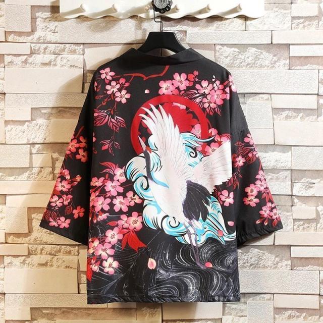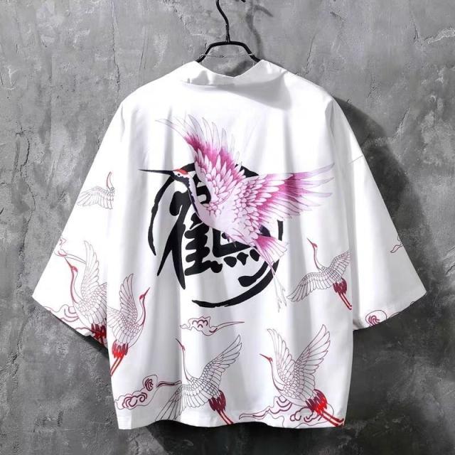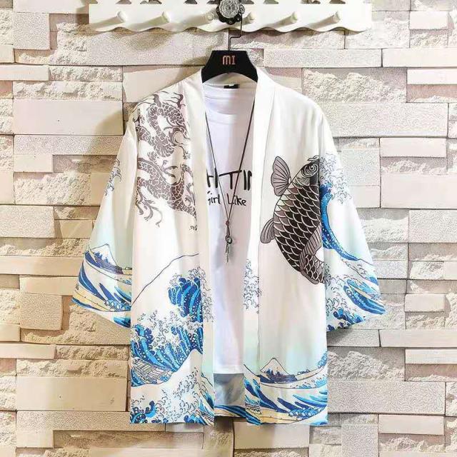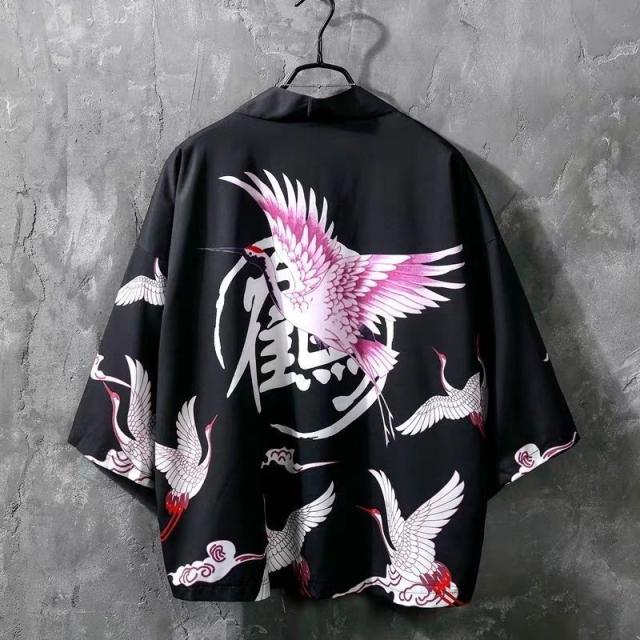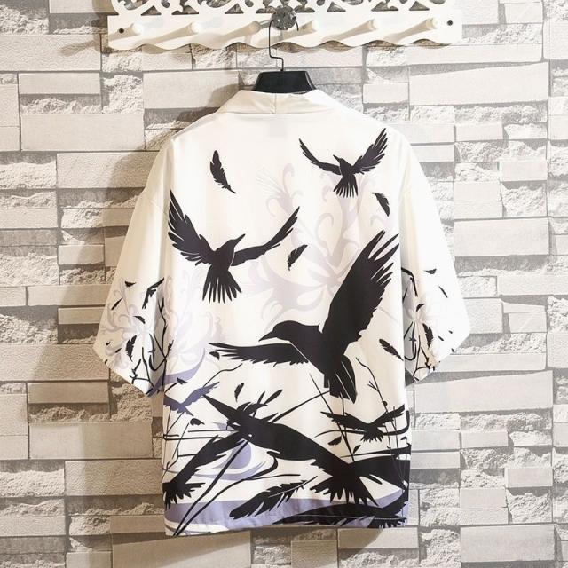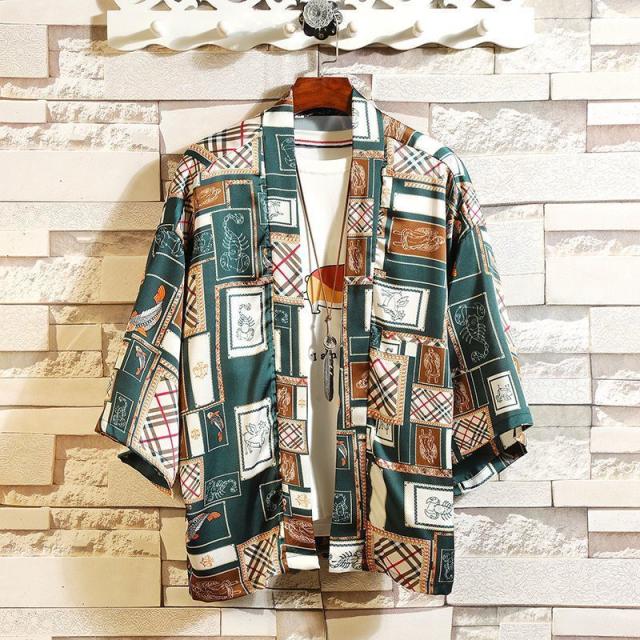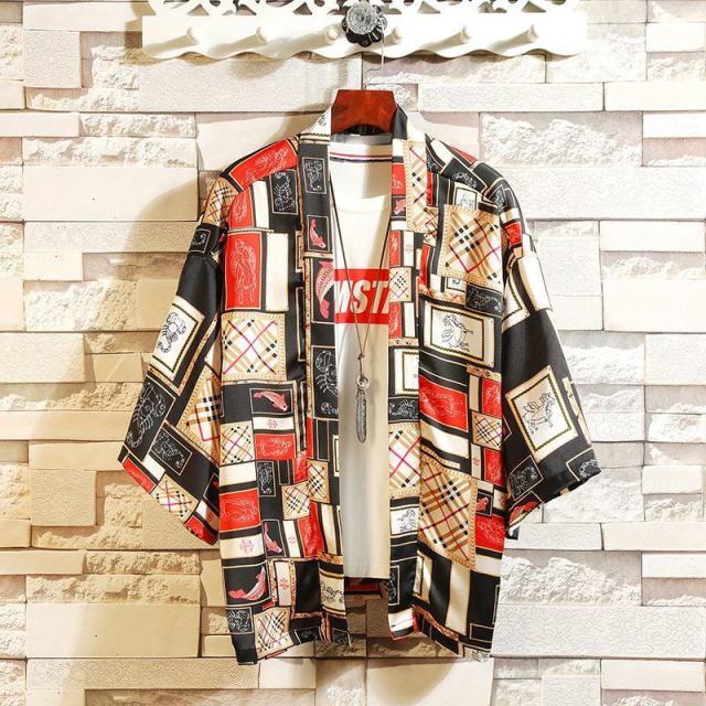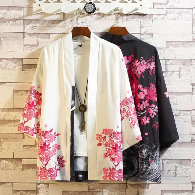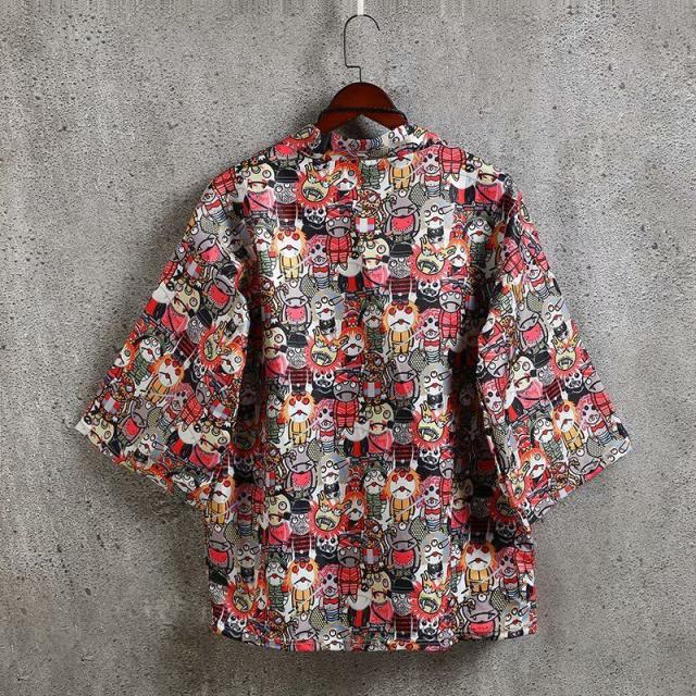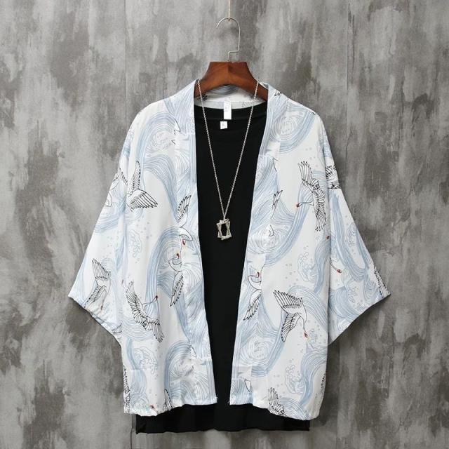 送料無料 カーディガン メンズ 甚平 はおり 羽織り 作務衣 七分袖 シャツ 和式 柄付き 部屋着 ビッグシルエット 甚平風 浴衣風 夏服 着物 寝巻き 花火大会 春 夏