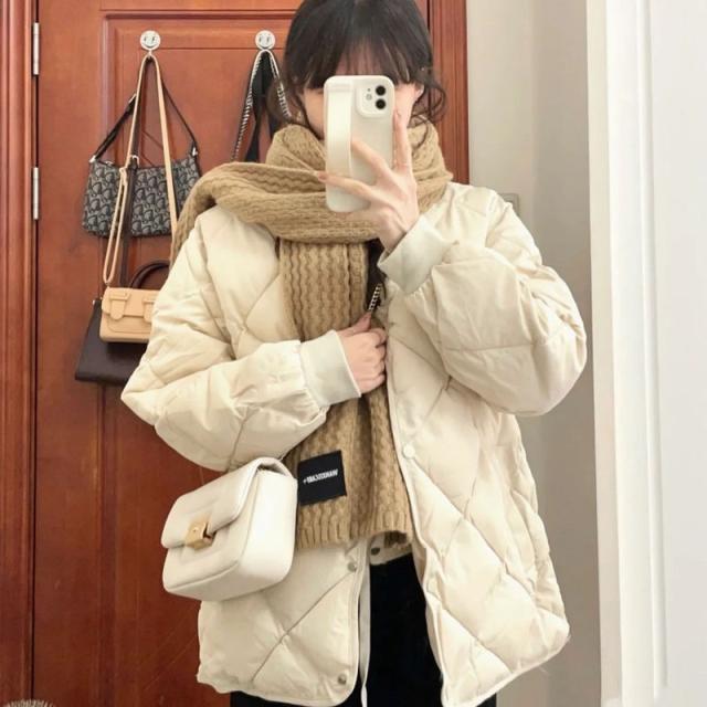 綿の服 レディース ジャケット 軽量 ショート丈 ラウンドネック 無地 カジュアル 薄手 秋冬 ゆったり 防寒 防風 おしゃれ