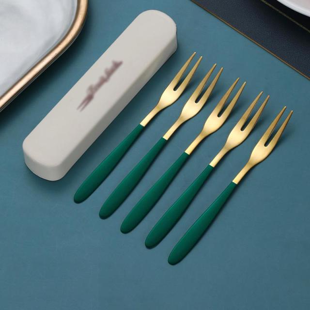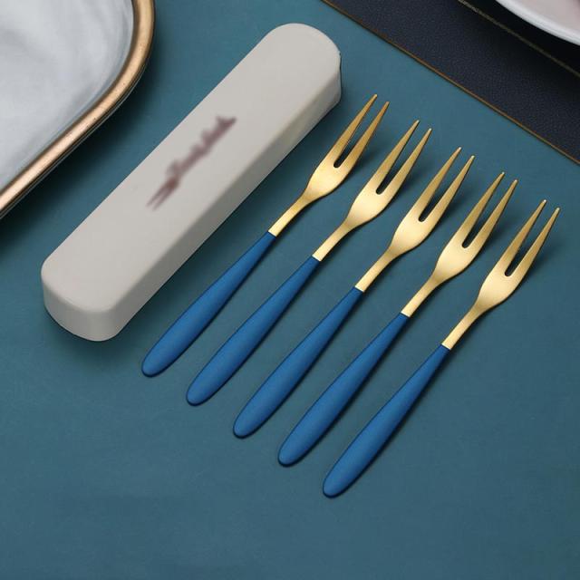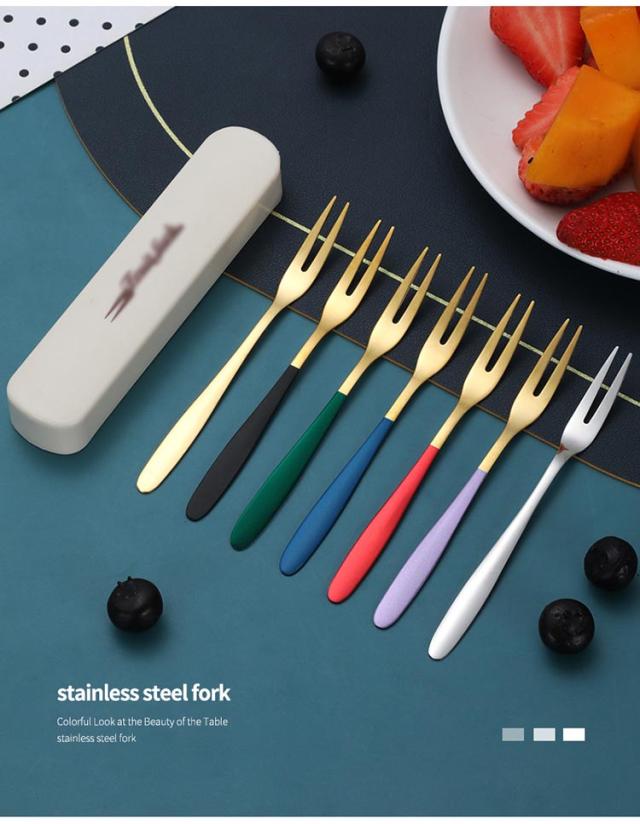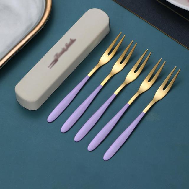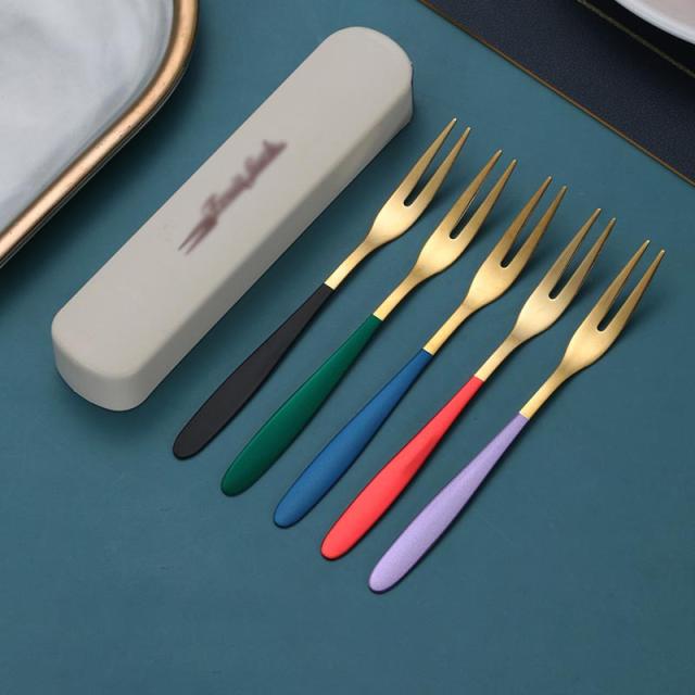 果物フォーク 5点セット フルーツフォーク 04ステンレス製フォーク 2歯デザイン 収納ケース付き カトラリー おしゃれ 大人 キッチン 食器 カラフル 可愛い 誕生日 母の日 結婚祝い プレゼント