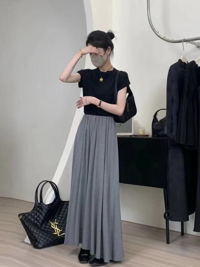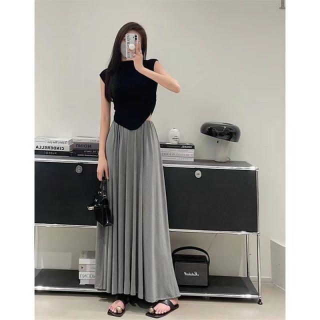 スカート レディース プリーツスカート マキシスカート 春夏 フレア ロング丈 グレー ブラック ロングスカート ウエストゴム 大人 プリーツ スカート スウェット スエット