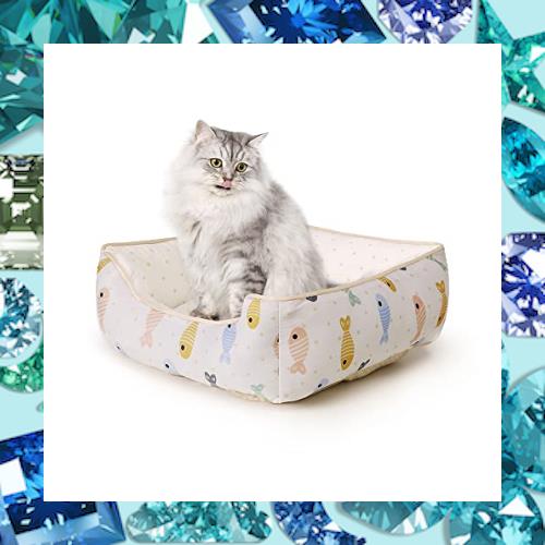 JEMA 猫 ベッド 夏用 犬 ペットベッド 接触冷感 ひんやり クッション 洗える 長方形 40x35x13cm ペットべっと 犬用ソファー 小魚柄?