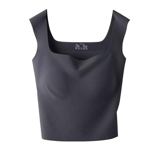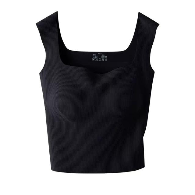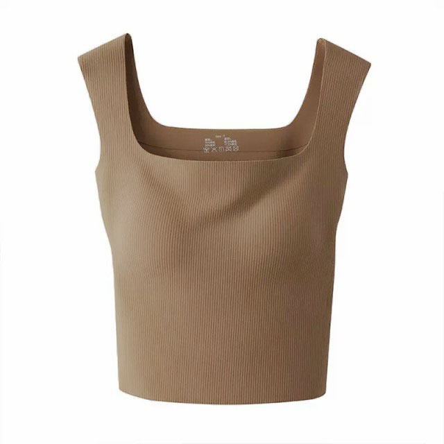 ブラ紐隠し インナー タンクトップ スクエアネック カップ付き リブ キャミソール トップス 下着 肌着 無地 部屋着 ノースリーブ お洒落 ストレッチ