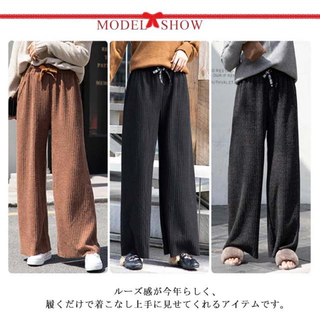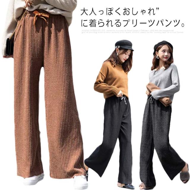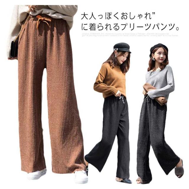 (送料無料)パンツ レディース マキシ丈 秋 ゆったり ロングパンツ 大きいサイズ ワイドパンツ プリーツ ガウチョパンツ ルーズ ハイウエスト 無地 シンプル フェミニン 大人 かわいい 透気性抜群 着?せ ブラック グレー ブラウン 冬