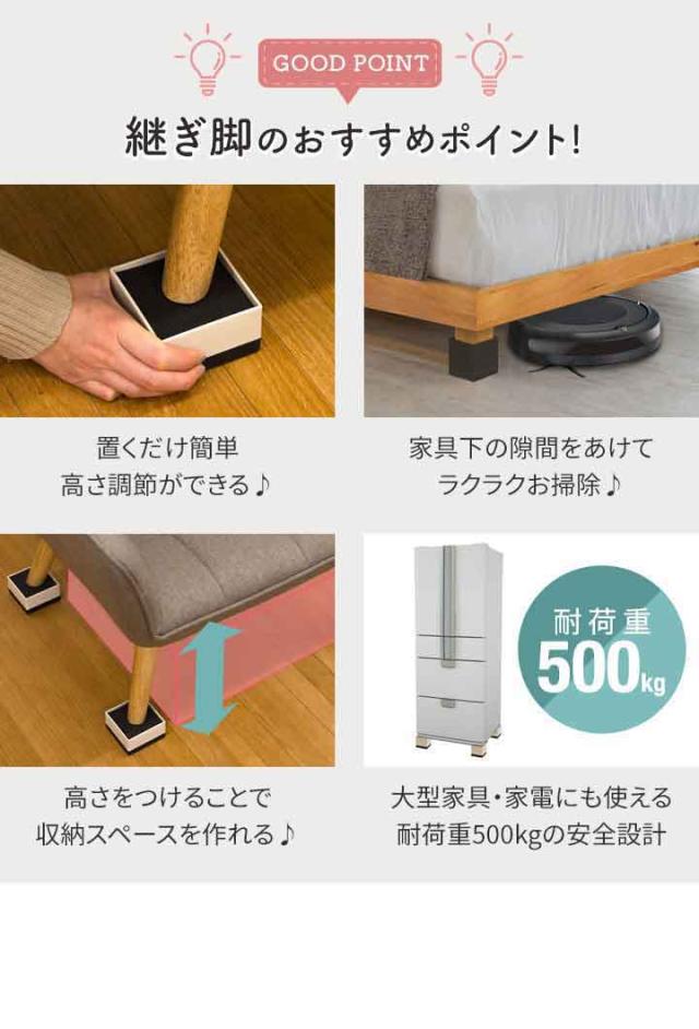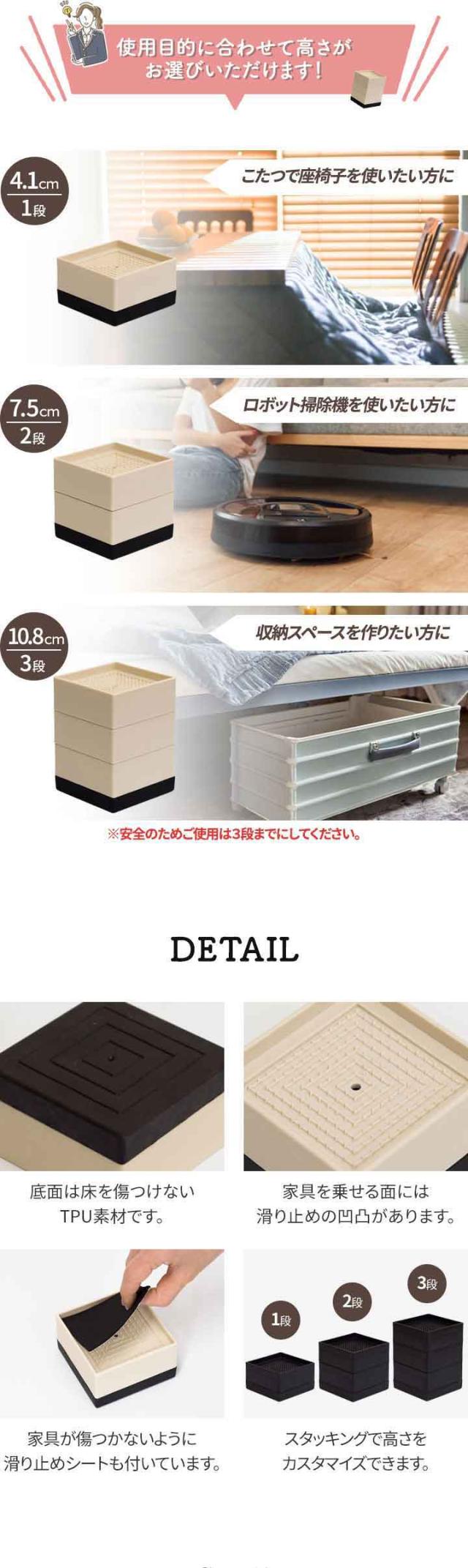 継ぎ脚 継脚 高脚 底上げ かさ上げ 継ぎ足し 高さ調整 高さ調節 延長 コタツの高さをあげる 机の高さをあげる 延長脚 脚 足 台 家具脚 ベッド高さ調整 ソファー テーブル高さ調整器具 テーブルの脚 便利グッズ リビング お掃除ロボット ロボット掃除機 ルンバ Roomba ブラーバ Braava ルンバブル テーブル こたつ コタツ 炬燵 ベッド 机 デスク リビング ソファー 座椅子 家具 部品 こたつ用部品 テーブル用部品 デスク用部品 こたつ部品 テーブル部品 デスク部品 パーツ オプション アクセサリー テーブル脚 ベッド脚 デスク脚 ソファー脚 耐震 静振 振動 防音 傷 キズ防止 インテリア・寝具・収納 日用品 テーブル テーブル用部品 脚 おすすめ アイボリー ブラック 白 黒
