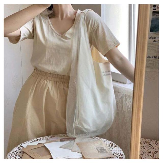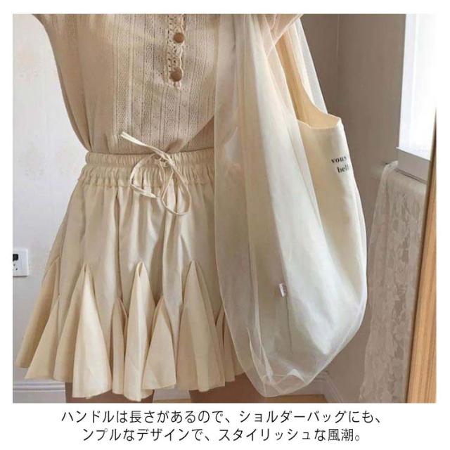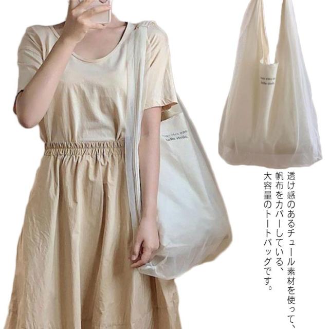 トートバッグ チュールバッグ レディース エコバッグ ハンドバッグ サブバッグ シアーバッグ マイバッグ ファッションコーデ シンプル おしゃれ かわいい 無地 お出かけ 爽やか 帆布
