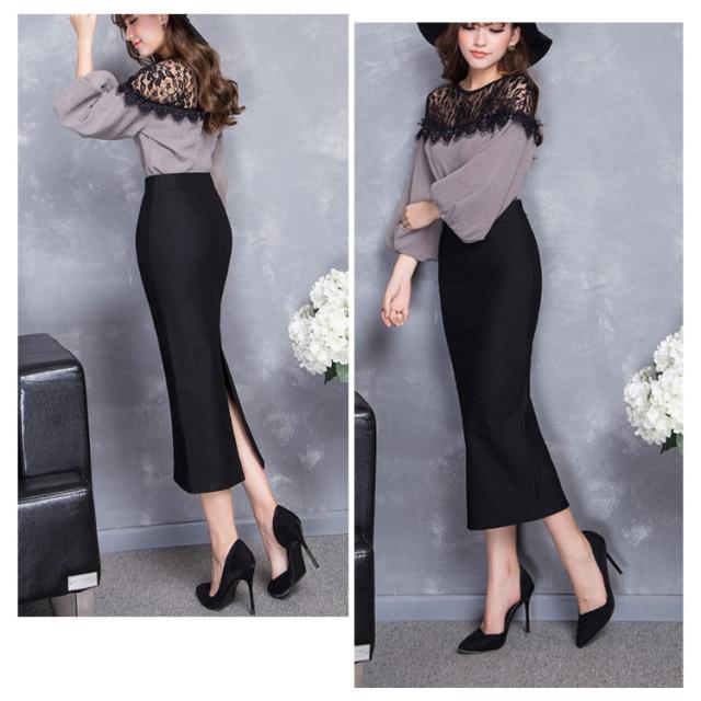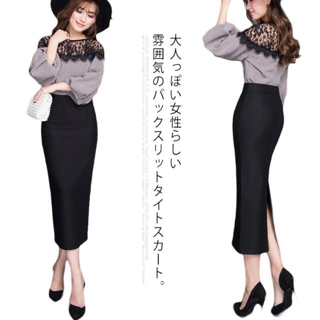 ペンシルスカート ミモレスカート スーツ レディース スカート 無地 タイトスカート バックスリット スタイル効果 ハイウエスト ロングスカート ミドルスカート Iライン スリット 秋冬 黒 春 ボトムス