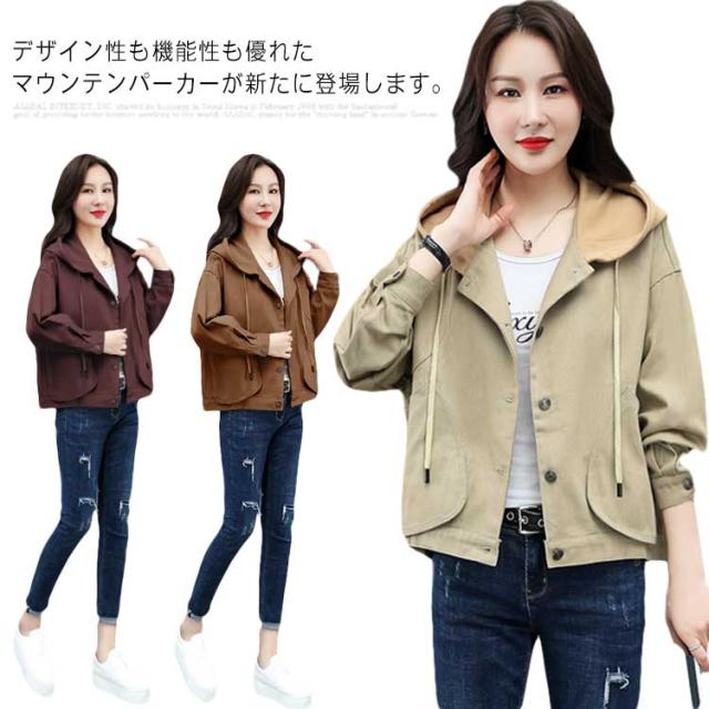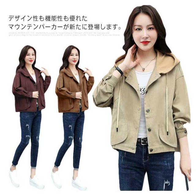 マウンテンパーカー ジャケット アウター 春秋 ウインドブレーカー カジュアル ショート丈 ジャンパー レディース フード付き お洒落 大きいサイズ 体型カバー 防風 アウトドア